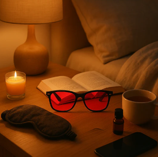 Las lentes de contacto Night Lenses están diseñadas para bloquear el 100 % de la luz azul después del atardecer, lo que ayuda al cuerpo a producir melatonina de forma natural y facilita un sueño más profundo y reparador. -